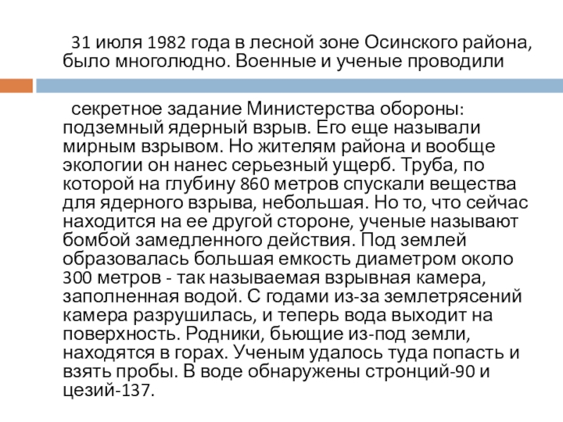 Слайд 4 31 июля 1982 года в лесной зоне Осинского района, было многолюдно.