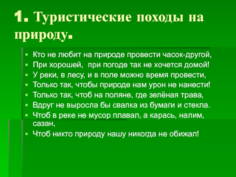 Слайд 51. Туристические походы на природу.