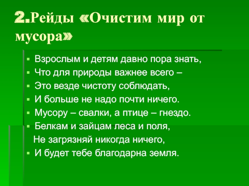 Слайд 72.Рейды «Очистим мир от мусора»