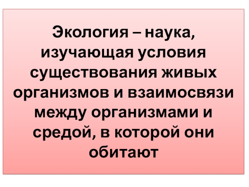 Слайд 6Экология – наука, изучающая условия существования живых организмов и взаимосвязи между