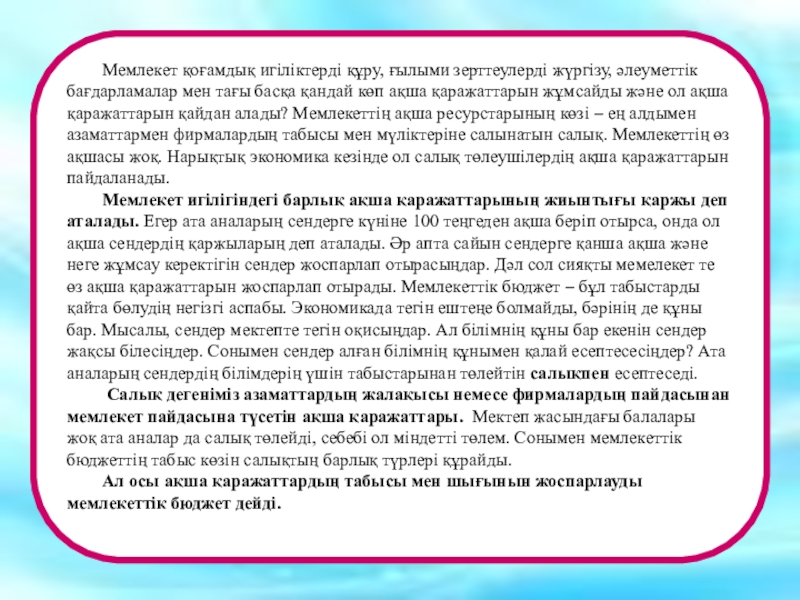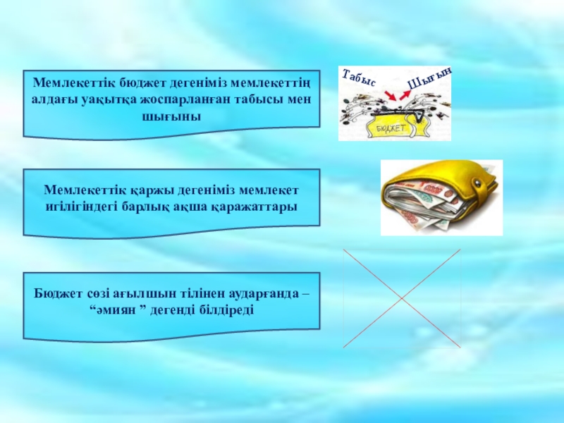 Мемлекеттік бюджет дегеніміз мемлекеттің алдағы уақытқа жоспарланған табысы мен шығыны