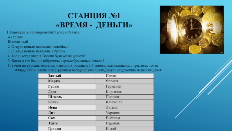Определите, каким иностранным государствам принадлежат следующие названия денег