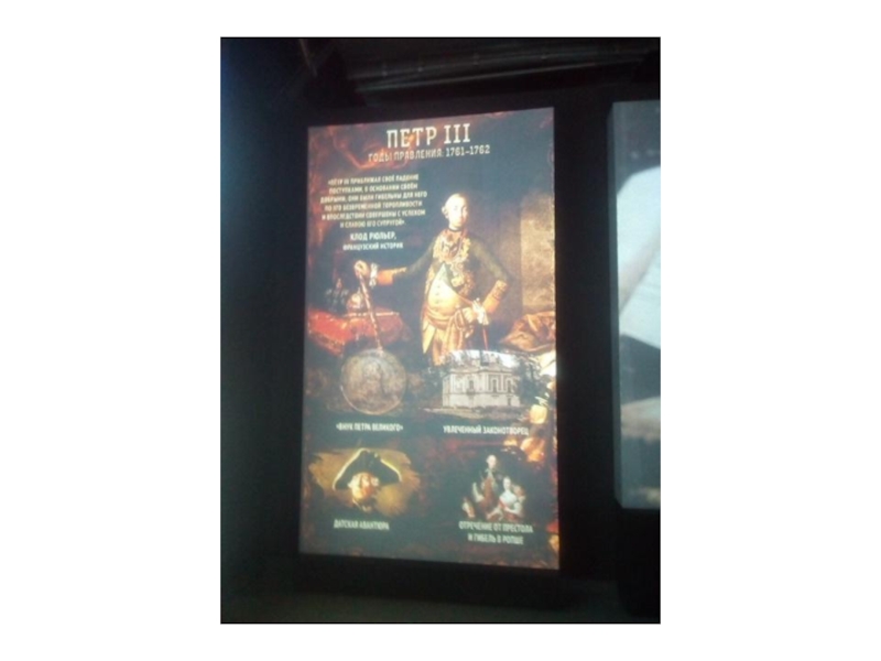 Экспозиции:   1.Рюриковичи 2.Романовы 3.1914-1945 4.1945-2016