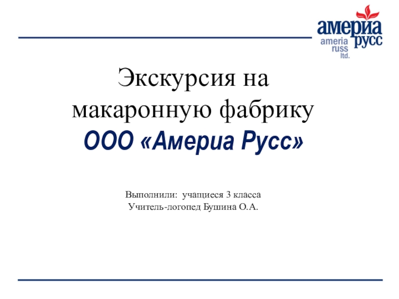 Экскурсия на макаронную фабрикуООО «Америа Русс»Выполнили: учащиеся 3 классаУчитель-логопед Бушина О.А.
