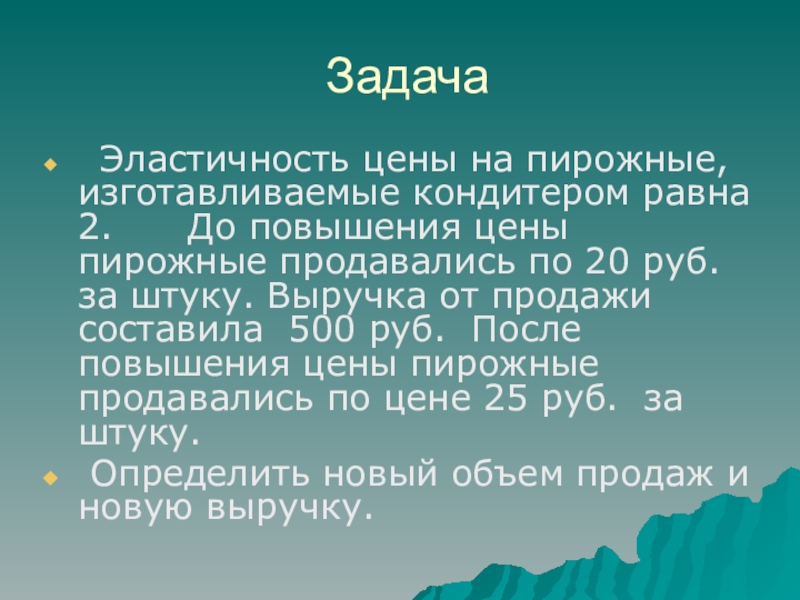 Задача Эластичность цены на пирожные, изготавливаемые кондитером равна 2.   До повышения цены пирожные продавались по