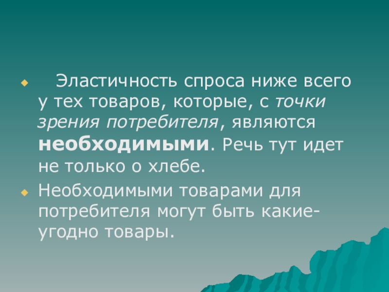 Эластичность спроса ниже всего у тех товаров, которые, с точки зрения потребителя, являются необходимыми. Речь тут