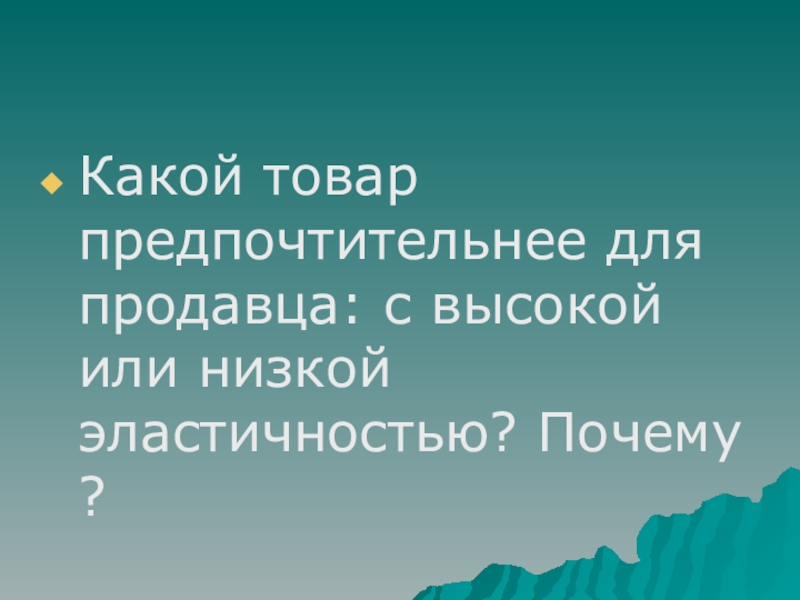 Какой товар предпочтительнее для продавца: с высокой или низкой эластичностью? Почему ?