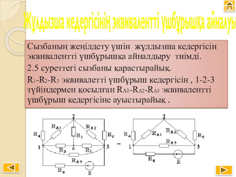Слайд 25Жұлдызша кедергісінің эквивалентті үшбұрышқа айналуы