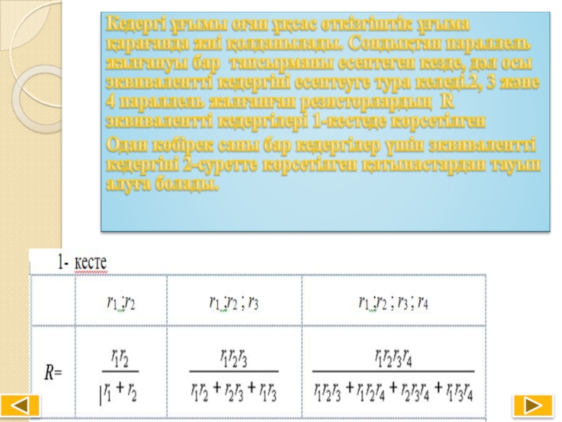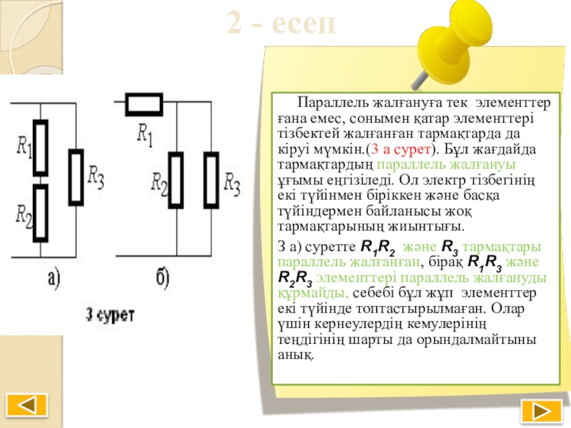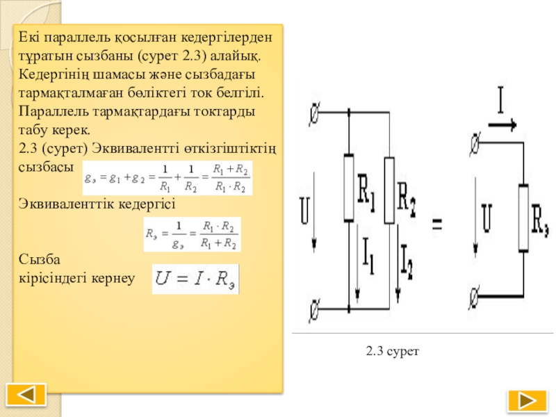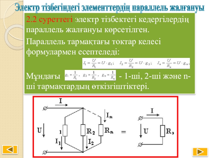 Слайд 182.2 суреттегі электр тізбектегі кедергілердің параллель жалғануы көрсетілген.