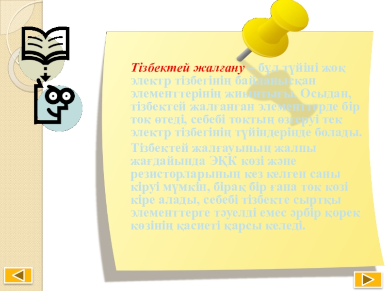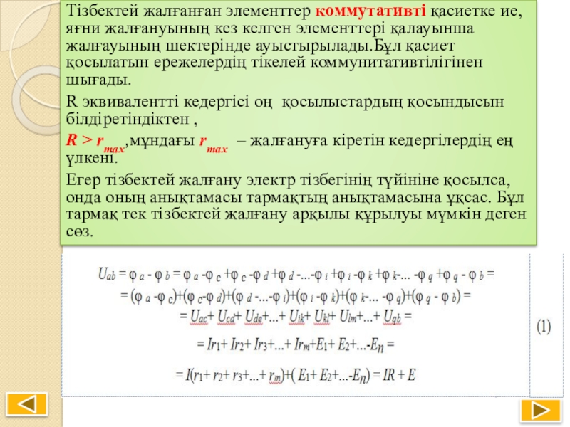 Слайд 3Тізбектей жалғану – бұл түйіні жоқ электр тізбегінің байланысқан элементтерінің жиынтығы.
