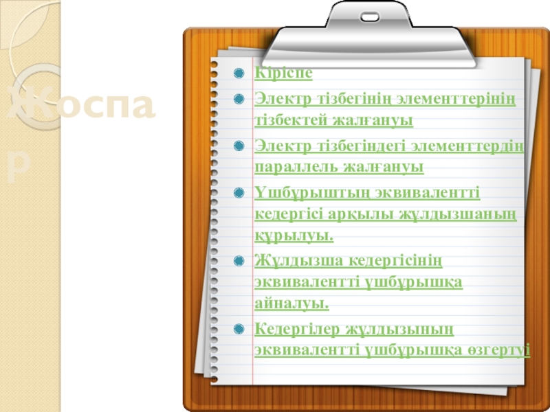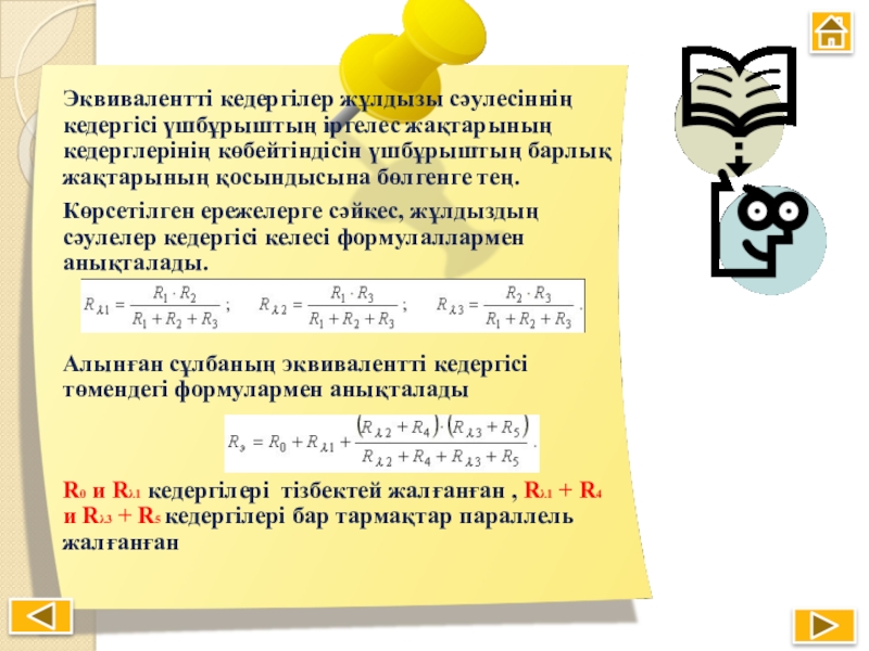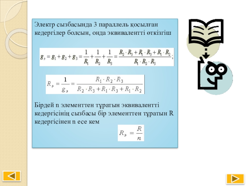 Слайд 20Электр сызбасында 3 параллель қосылған кедергілер болсын, онда эквивалентті өткізгіш