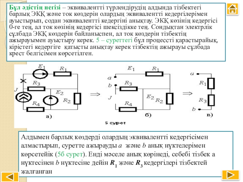 Слайд 15Бұл әдістің негізі – эквивалентті түрлендірудің алдында тізбектегі барлық ЭКҚ және