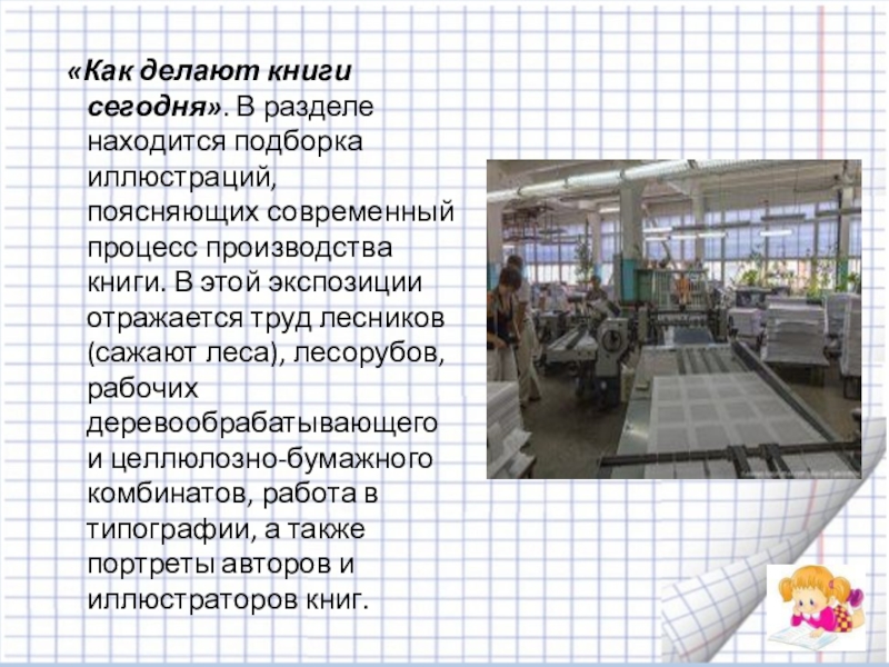 Слайд 10 «Как делают книги сегодня». В разделе находится подборка иллюстраций, поясняющих