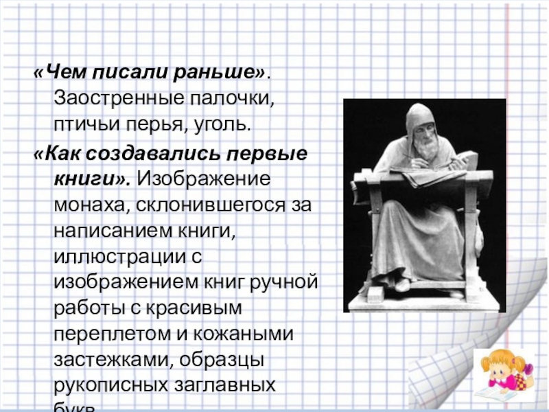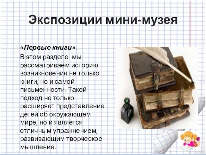 рассматриваем историю возникновения не только книги, но и самой письменности. Такой подход не только расширяет представление детей об окружающем мире, но и является отличным упражнением, развивающим творческое мышление.