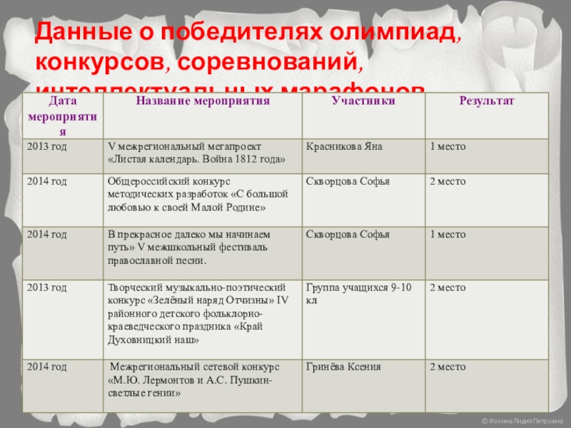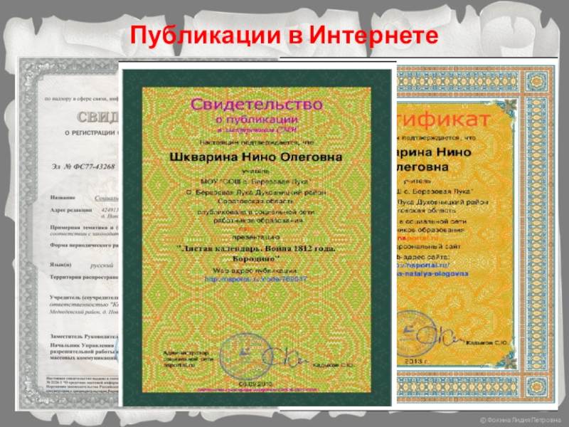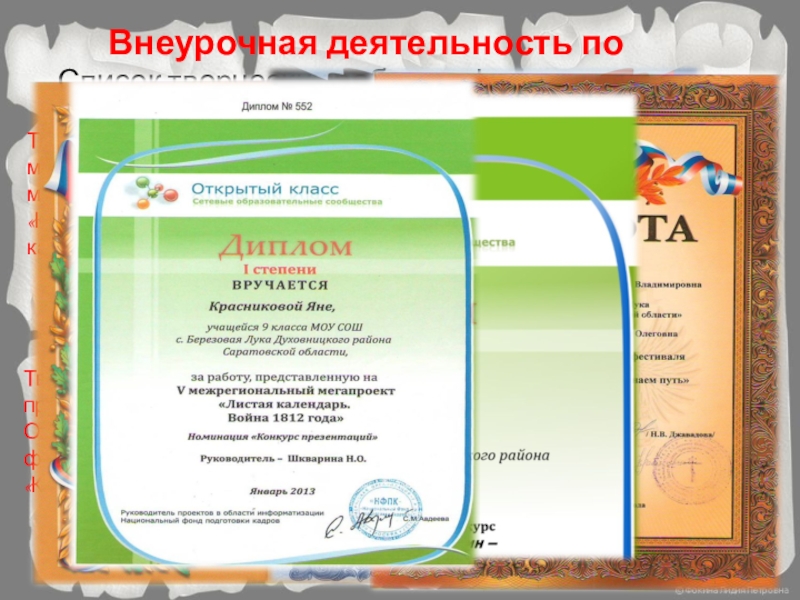Творческая работа V межрегионального мегапроекта в номинации «Конкурс презентаций «Листая календарь. Война 1812 года»