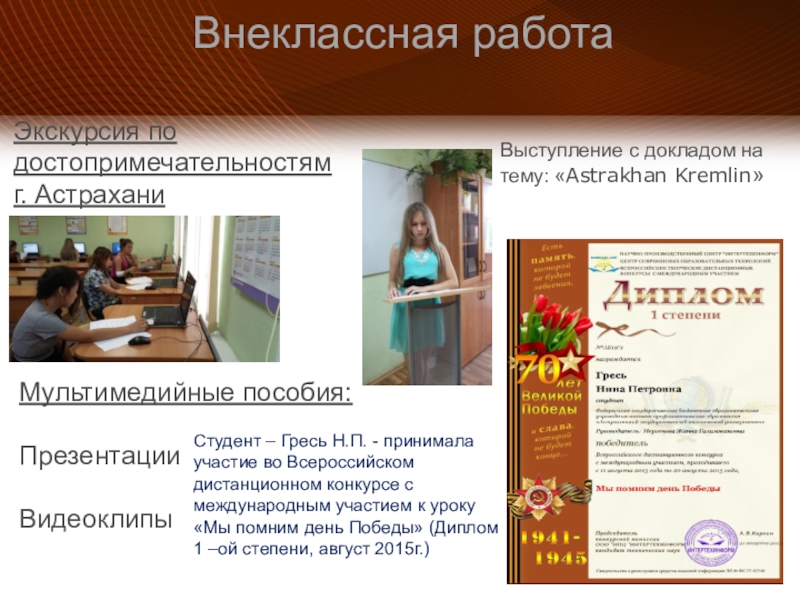 Выступление с докладом на тему: «Astrakhan Kremlin»