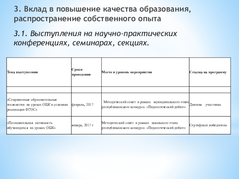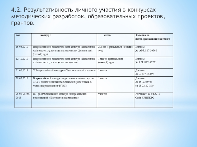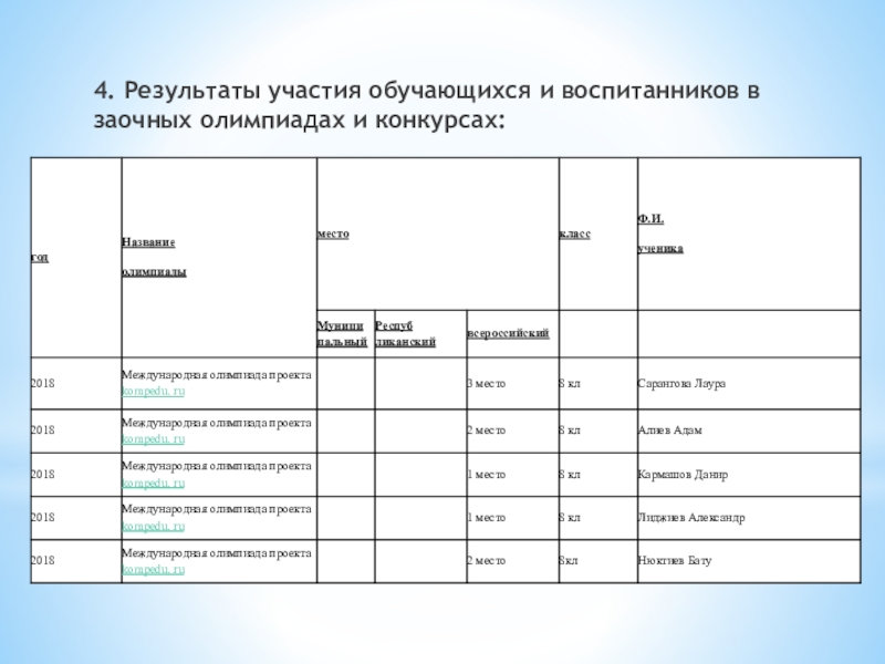 3. Результаты участия в конкурсах, проектах, соревнованиях, фестивалях и др. мероприятиях
