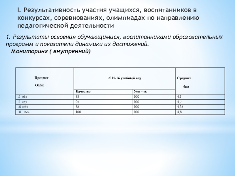 1. Результаты освоения обучающимися, воспитанниками образовательных программ и показатели динамики их достижений.