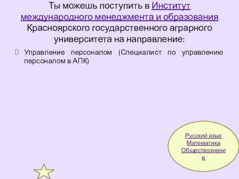 Управление персоналом (Специалист по управлению персоналом в АПК)