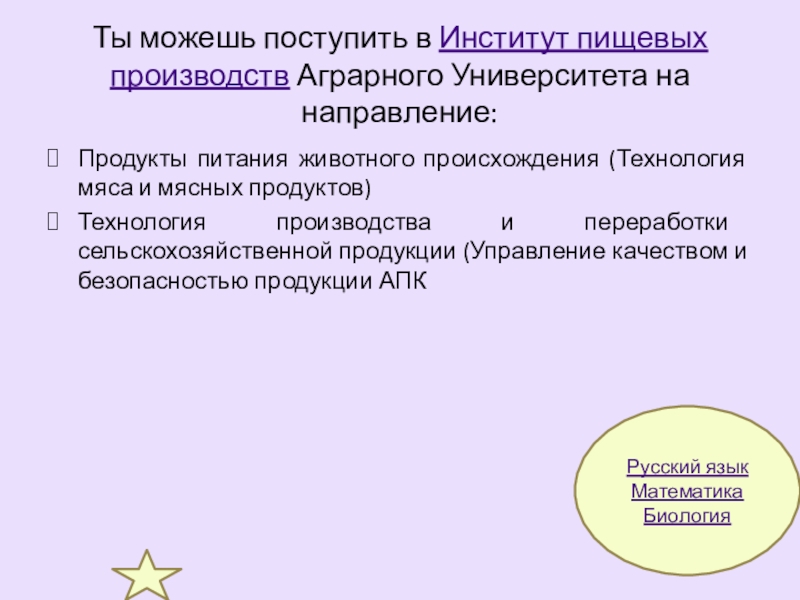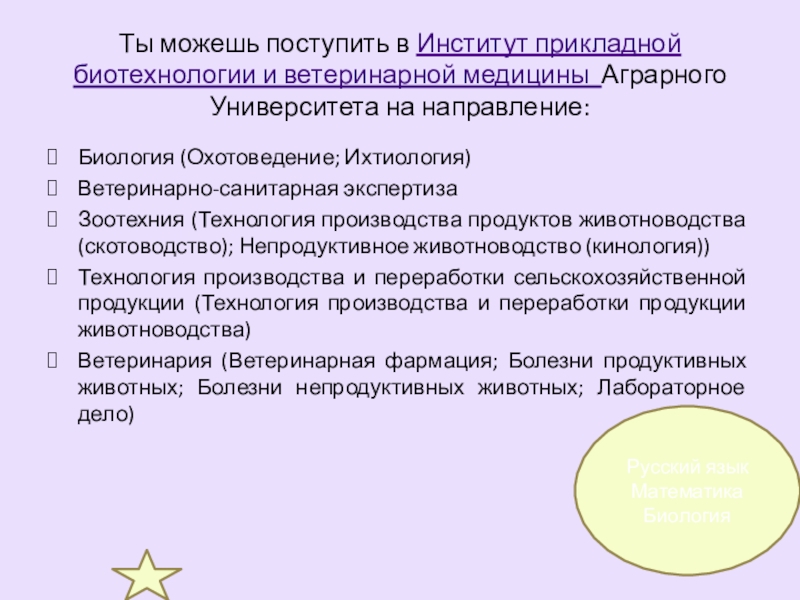 Зоотехния (Технология производства продуктов животноводства (скотоводство); Непродуктивное животноводство (кинология))
