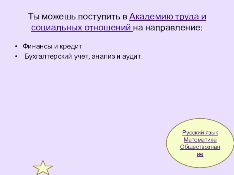 Бухгалтерский учет, анализ и аудит; Финансы и кредит