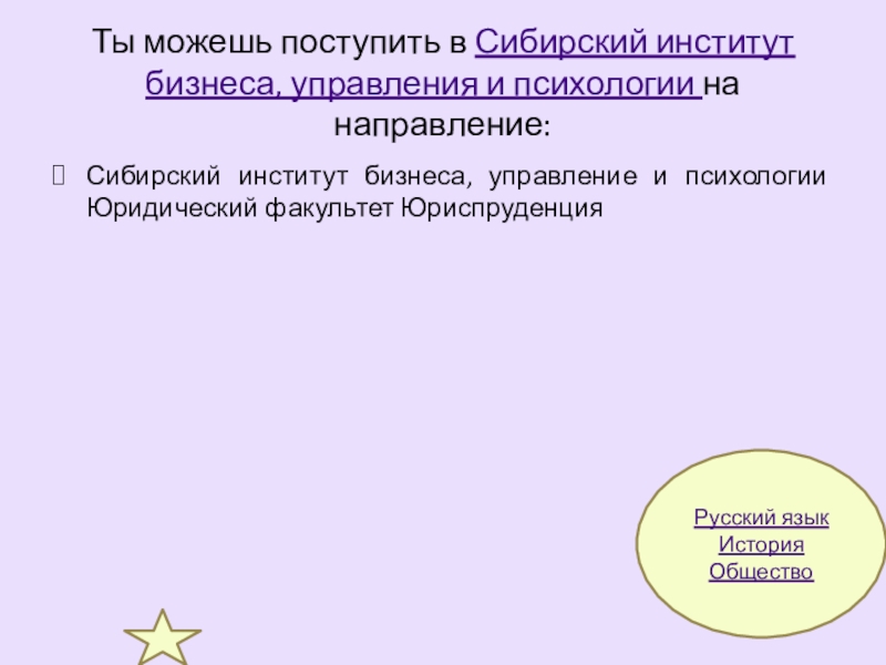 Сибирский институт бизнеса, управление и психологии Юридический факультет Юриспруденция