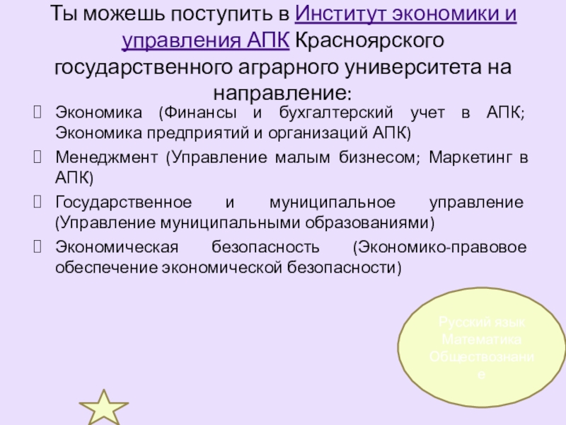 Экономика (Финансы и бухгалтерский учет в АПК; Экономика предприятий и организаций АПК)