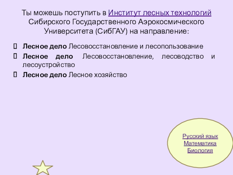 Биология (Охотоведение; Ихтиология)