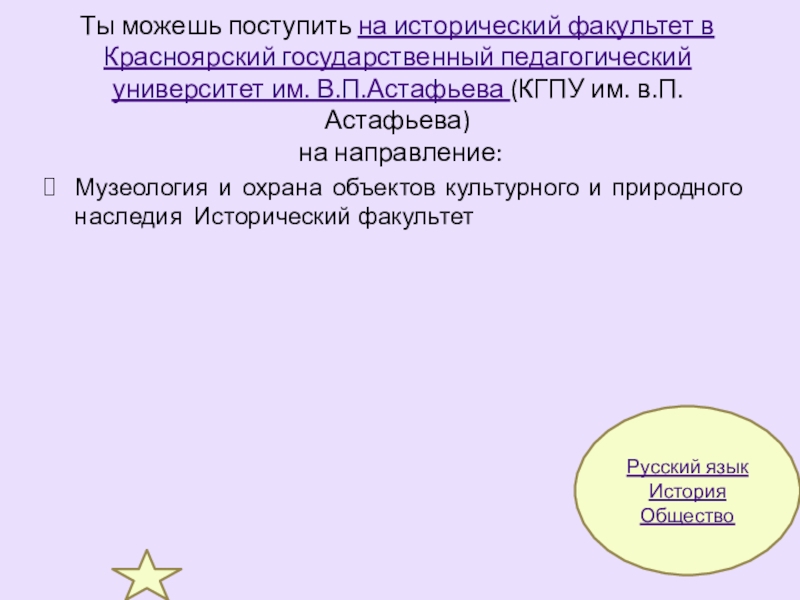 Музеология и охрана объектов культурного и природного наследия Исторический факультет