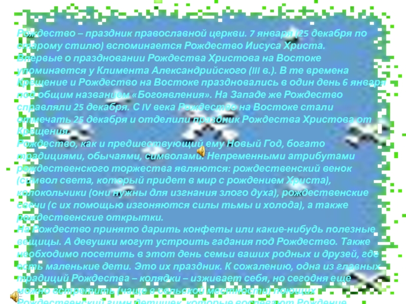 Слайд 7Рождество – праздник православной церкви. 7 января (25 декабря по старому