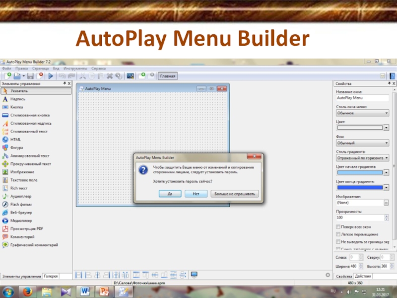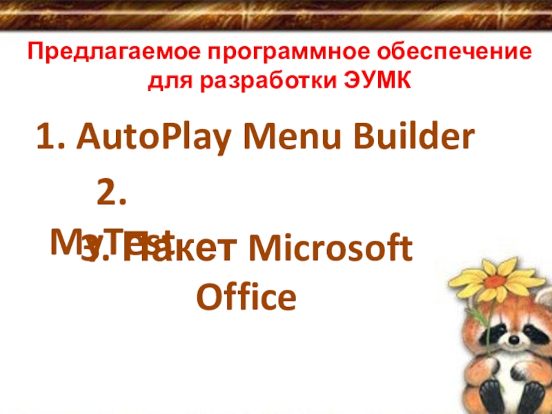 Предлагаемое программное обеспечение для разработки ЭУМК1. AutoPlay Menu Builder 2. MyTest3. Пакет Microsoft Office