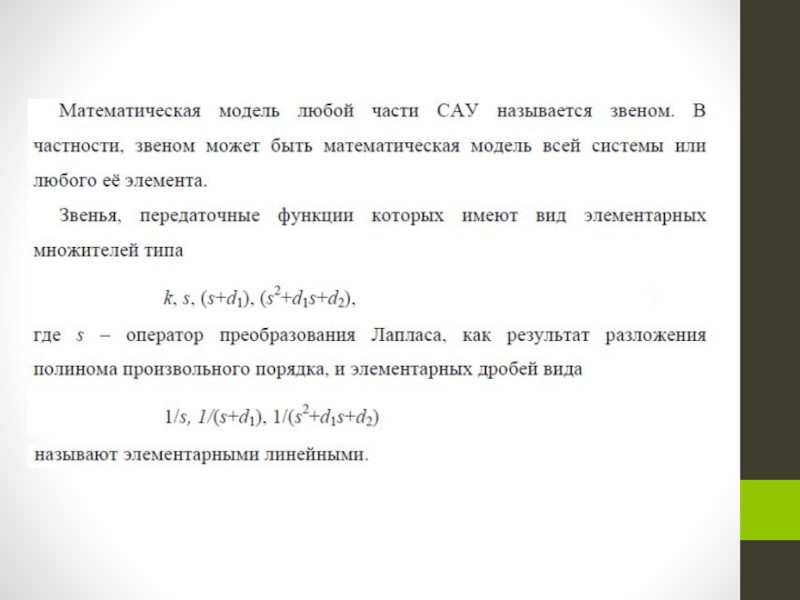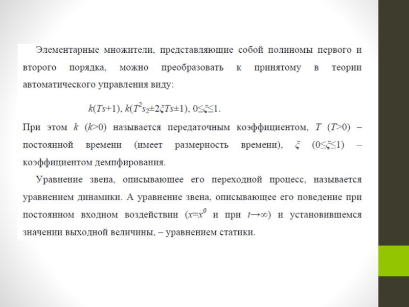 Презентация, доклад на тему Элементарные звенья систем автоматического управления и их характеристики