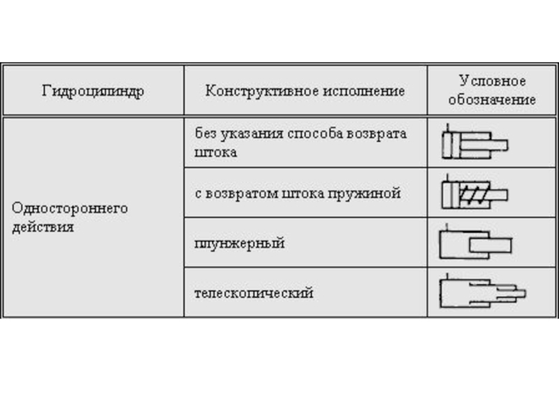 Слайд 13Гидроцилиндр с пружинным возвратом