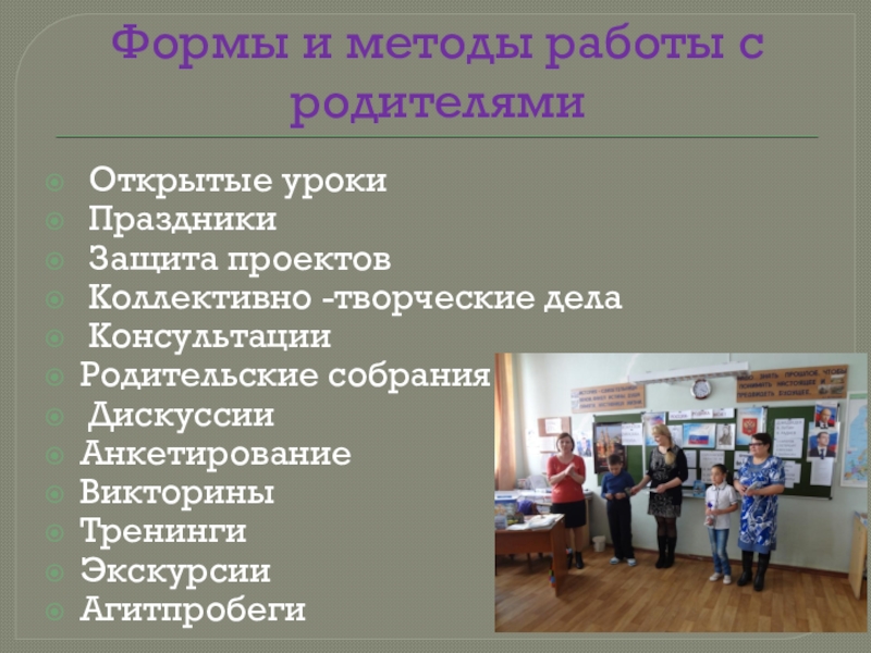 Слайд 7Формы и методы работы с родителями