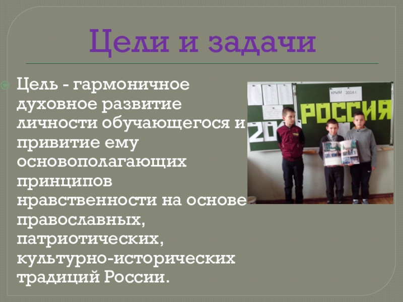 ему основополагающих принципов нравственности на основе православных, патриотических, культурно-исторических традиций России.