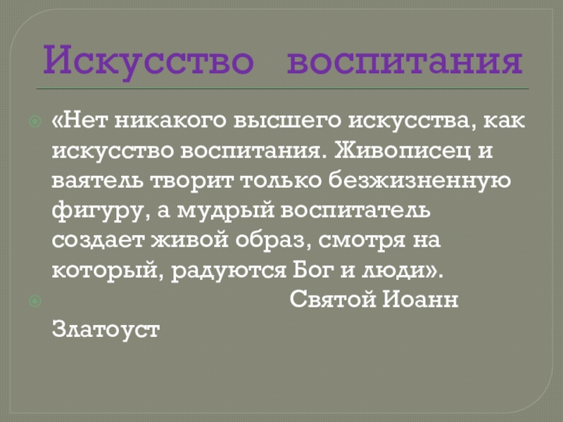 ваятель творит только безжизненную фигуру, а мудрый воспитатель создает живой образ, смотря на который, радуются Бог и люди».