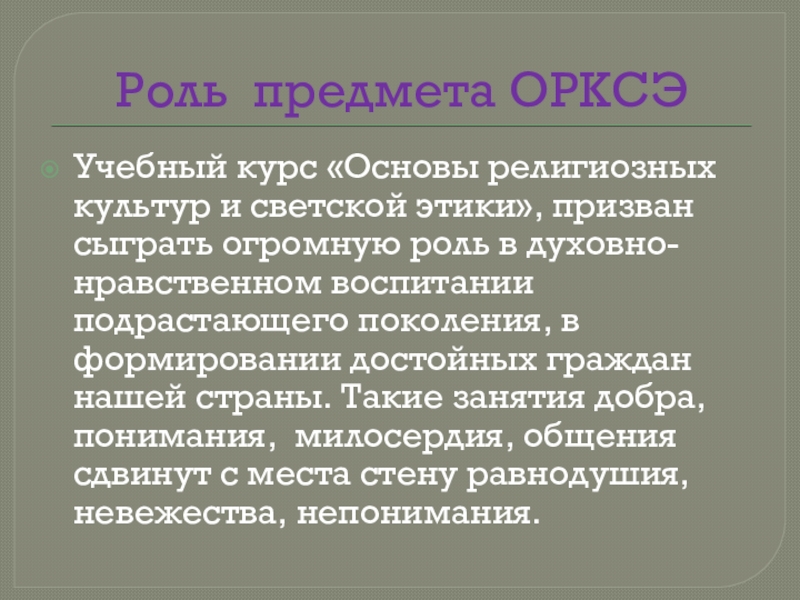 Слайд 9Роль предмета ОРКСЭ