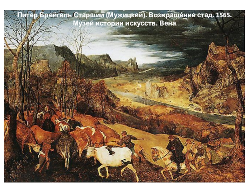 Слайд 11Питер Брейгель Старший (Мужицкий). Возвращение стад. 1565. Музей истории искусств. Вена