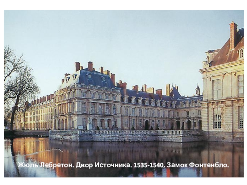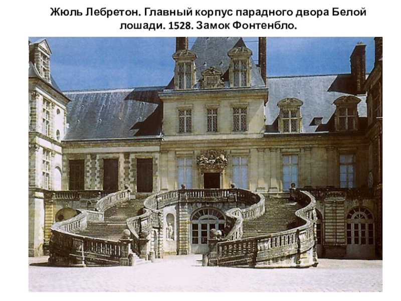 Слайд 19Жюль Лебретон. Главный корпус парадного двора Белой лошади. 1528. Замок Фонтенбло.