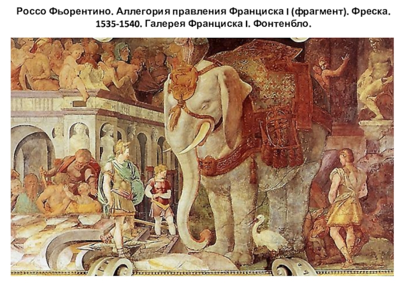 Слайд 25Россо Фьорентино. Аллегория правления Франциска I (фрагмент). Фреска. 1535-1540. Галерея Франциска