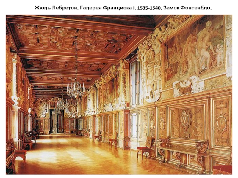 Слайд 20Жюль Лебретон. Галерея Франциска I. 1535-1540. Замок Фонтенбло.