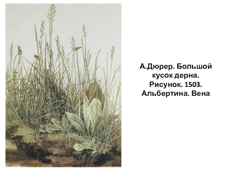 Слайд 4А.Дюрер. Большой кусок дерна. Рисунок. 1503. Альбертина. Вена