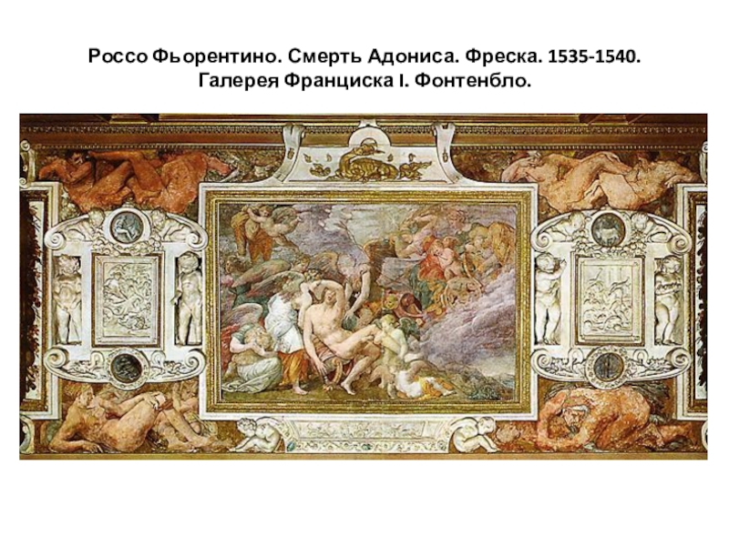 Слайд 26Россо Фьорентино. Смерть Адониса. Фреска. 1535-1540. Галерея Франциска I. Фонтенбло.