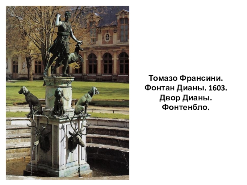 Слайд 22Томазо Франсини. Фонтан Дианы. 1603. Двор Дианы. Фонтенбло.