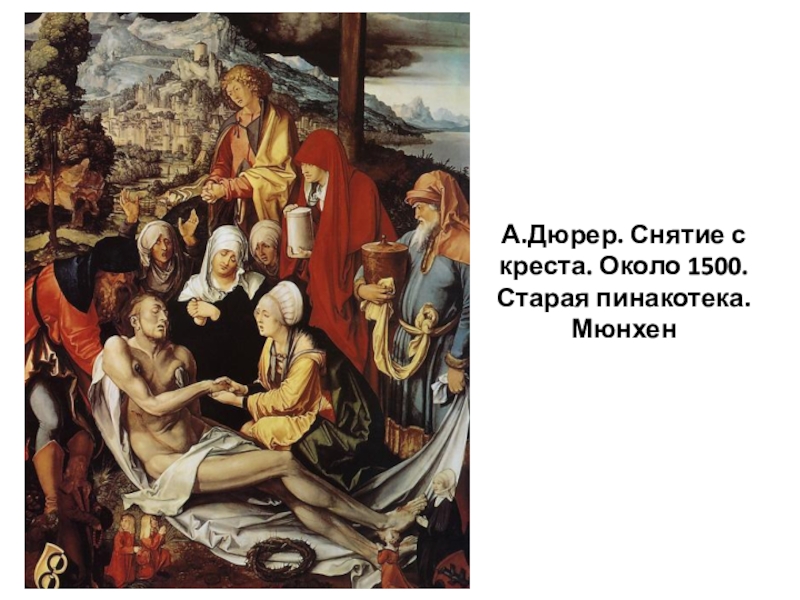 Слайд 3А.Дюрер. Снятие с креста. Около 1500. Старая пинакотека. Мюнхен