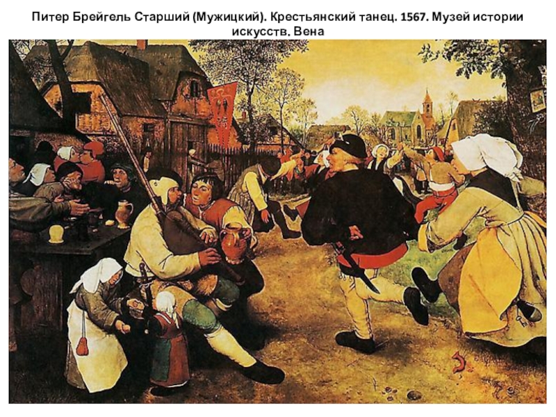 Слайд 10Питер Брейгель Старший (Мужицкий). Крестьянский танец. 1567. Музей истории искусств. Вена