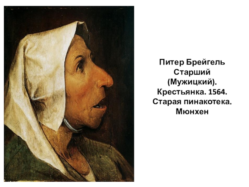 Слайд 9Питер Брейгель Старший (Мужицкий). Крестьянка. 1564. Старая пинакотека. Мюнхен