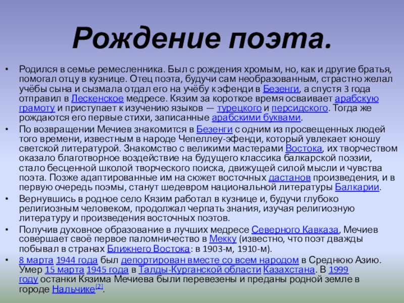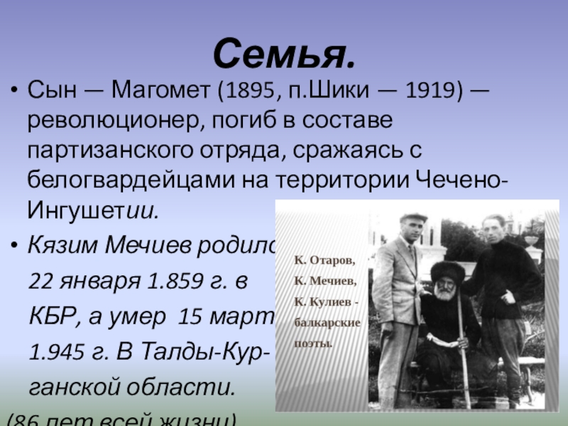 Презентация, доклад на тему Эристаева С. Основоположник балкарской литературы Мечиев Кязим Беккиевич