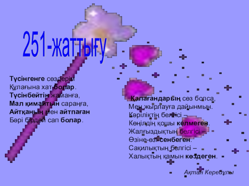 дамытушылық: таным белсенділігі мен грамматикалық сауатын жетілдіру, тіл дамыту, сөздік қорын арттыру;