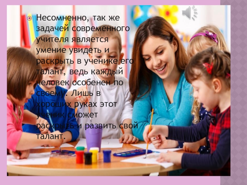 Слайд 8Несомненно, так же задачей современного учителя является умение увидеть и раскрыть